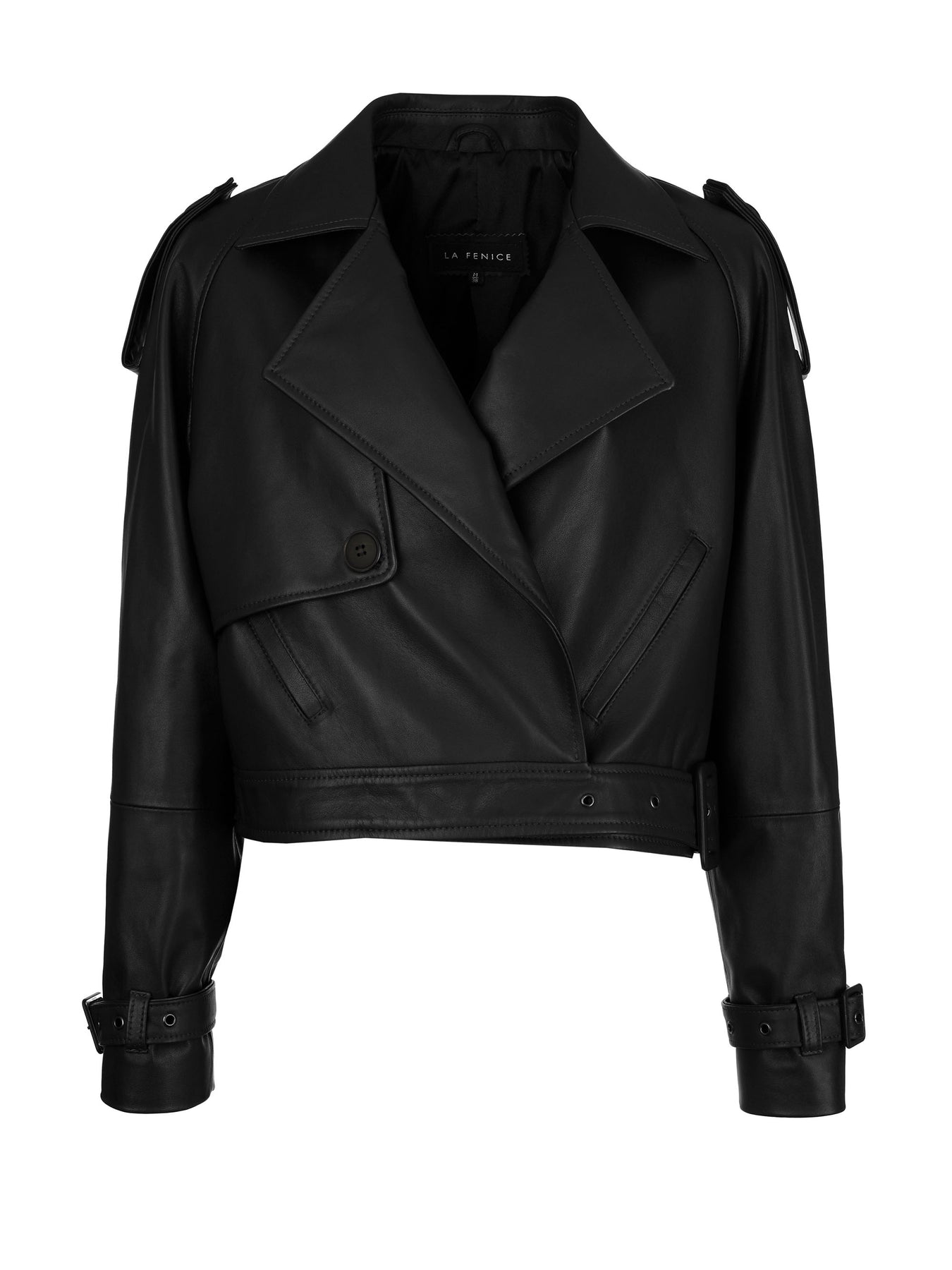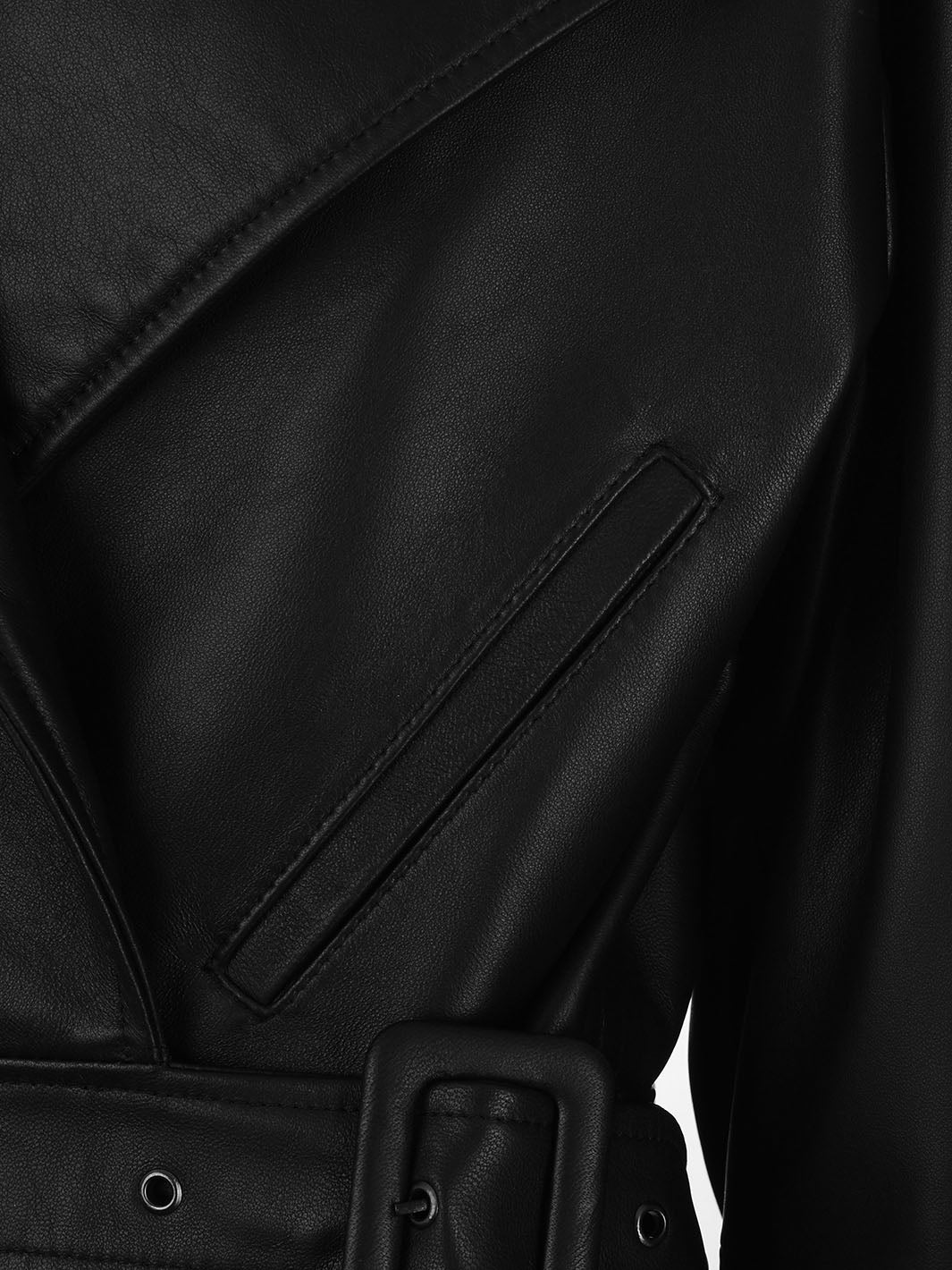 Projekt wyróżnia się nowoczesnym krojem – krótki fason oraz luźniejsza góra z obniżoną linią ramion tworzą modny efekt lekkiego oversize. Całość dopełniają starannie przemyślane detale: szeroki pas z klamrą na dole, który pozwala idealnie dopasować kurtkę do sylwetki, oraz charakterystyczne paski przy rękawach. Uwagę przykuwa również ręcznie oblekany skórą guzik przy klapie, będący świadectwem dbałości o każdy, nawet najmniejszy element wykończenia. To idealna propozycja na wiosnę i lato.